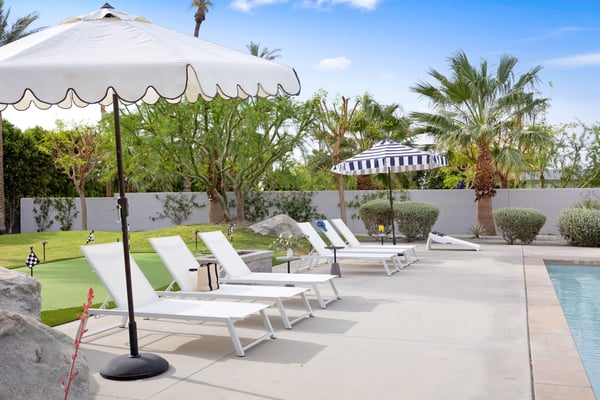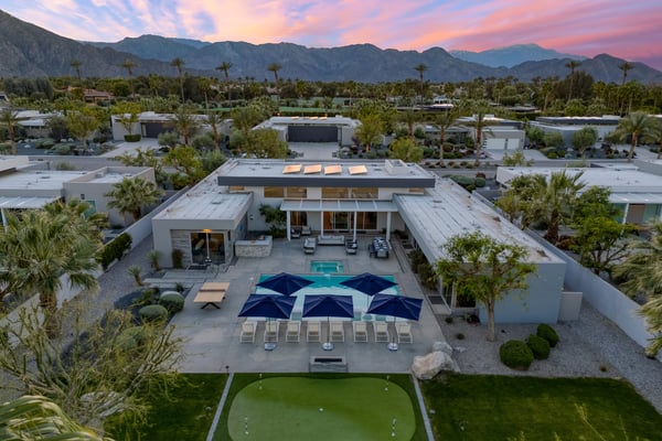 **This is a 3-home buyout. Each home is available to be booked individually, and we also offer similar buyouts in the same location.** Welcome to the Triad Escape Buyout - Villas 9, 10, and 11 - Three stunning villas in the heart of Coachella Valley. Enjoy 16 comfortable bedrooms and a sleeping capacity of 40 guests. Villas 9 & 11 feature clean, modern lines and architecture, 16-foot vaulted ceilings, in a gated community - these 5-bedroom, 5-bath homes are a perfect escape. Situated on a half-acre lot, each Villa features an expansive pool and spa area with an outdoor firepit, perfect for entertaining. Walking into the villa, you will find yourself drawn to the beautiful living area. Featuring a fireplace, big screen TV, and elevated furnishings, making this the ideal gathering place. This home features two primary suites with en suite bathrooms and large walk-in closets, allowing you to comfortably unwind after a busy day. The remaining three bedrooms also offer ensuite bathrooms, providing all guests with privacy. This luxurious and elegant home is the perfect place for you to get away from it all. Villa 10 is a 6-bedroom, 6.5 bath home that is a perfect escape. Situated on a half-acre lot, this Villa also features an expansive pool and spa area with an outdoor firepit, perfect for entertaining. Permit Number 260-330, 5 Bedrooms. 260320, 6 Bedrooms. 260-312, 5 Bedrooms.