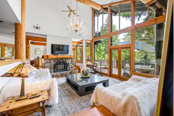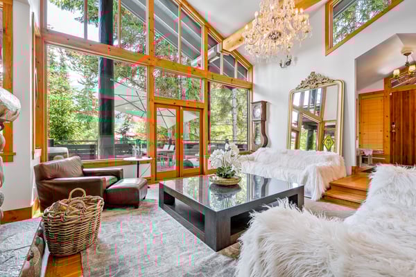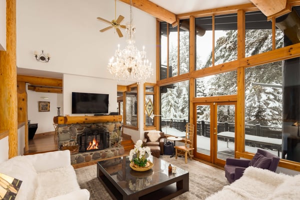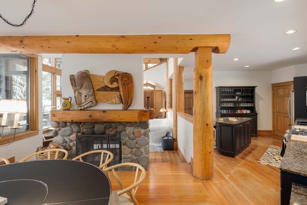 Cozy chalet in an amazing location! Beautiful views of the mountain in the prestigious, quiet and family-oriented Blueberry Hill. Perfect for a large group or one family. 25-minute walk to the village through the most beautiful trails, or catch the local bus just two steps away from the front door, which comes by every 15 minutes. As you enter through the unique West Coast native hand-carved front door, you'll be greeted by a heated slate entrance. This remarkable property boasts 7 spacious bedrooms, providing ample space and comfort for your stay, with 9 stylish beds and 3.5 well-appointed bathrooms. Find comfort and warmth by the crackling wood-burning natural fireplace in the spacious living room, creating an inviting and welcoming ambiance for relaxing after a day of enjoying Whistler's outdoors. Savour the outdoors with a generous and inviting outdoor dining space with a spacious deck, a dining table, and a barbecue. There is plenty of space in the driveway to fit 4-5 vehicles. The garage is not available for use in winter; it is available for up to 7 bikes as storage only in the Summer. Not large enough for a vehicle. Whether you opt for al fresco dining, unwind in the hot tub, or gather around the fireplace, this exceptional property offers the perfect spaces for memorable moments.