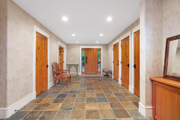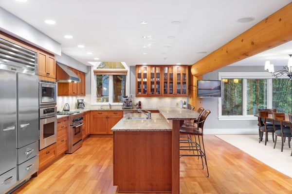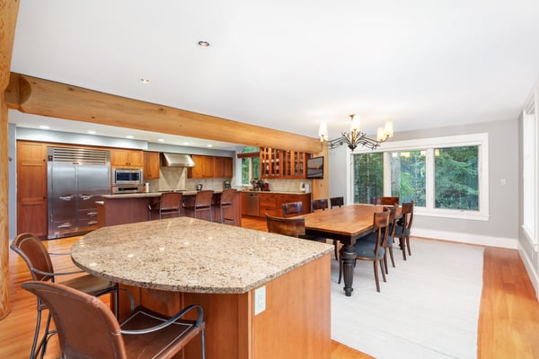 Horstman Lane is one of the most exclusive neighbourhoods in Whistler, tucked away on Blackcomb Mountain and located directly on the ski hill with its own ski-home trail. From this coveted address, you can ski right to your door in winter, and in just a short walk, you’re in the heart of Whistler Village with its world-class dining, shopping, and après scene. The Fairmont Golf Course and Valley Trail are also just minutes away, making this an ideal four-season location. 4942 Horstman Lane is an expansive 4-bedroom, 4.5-bathroom residence spanning 4,049 square feet over three levels. The main living area showcases soaring vaulted ceilings, an open layout, and a custom chef’s kitchen with high-end appliances. Natural elements like log posts and beams, slate, and hardwood flooring give the home an authentic Whistler chalet feel. With two bedrooms plus a den upstairs, and two additional bedrooms along with a games room and family room on the lower floor, the layout is perfectly designed for families or entertaining friends.