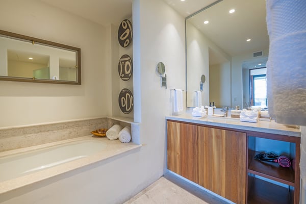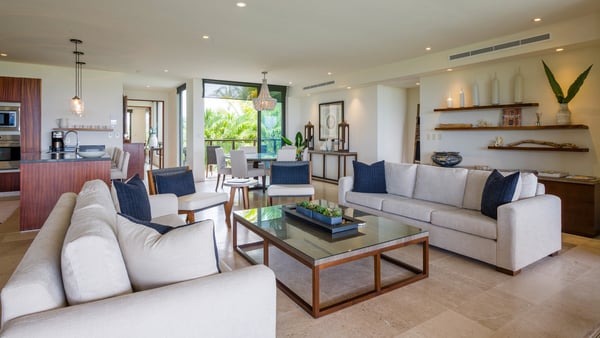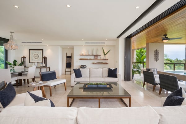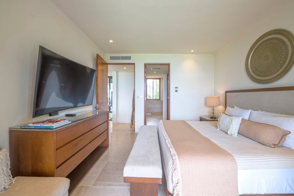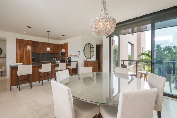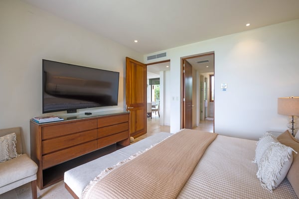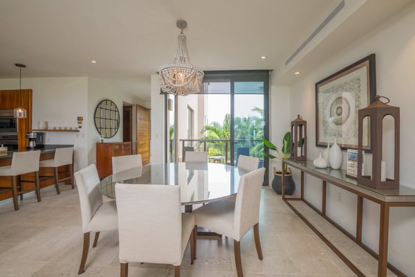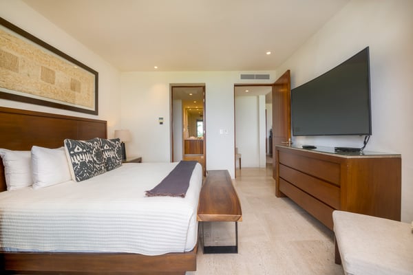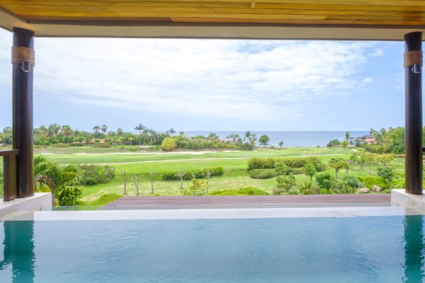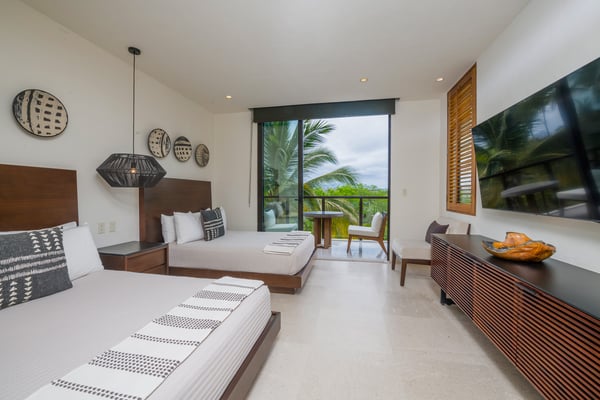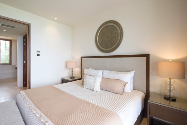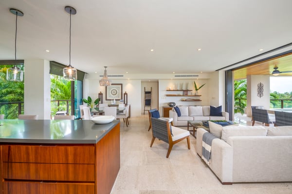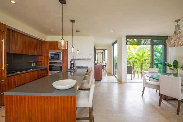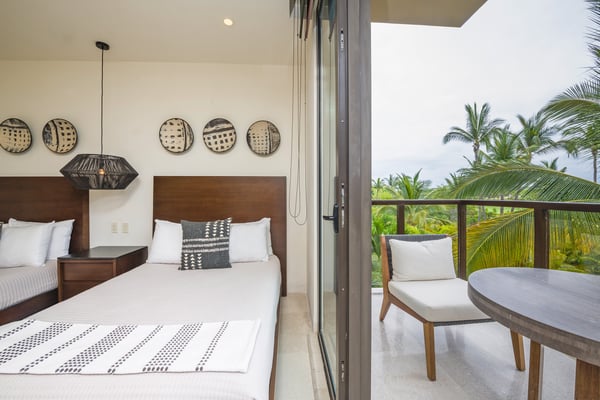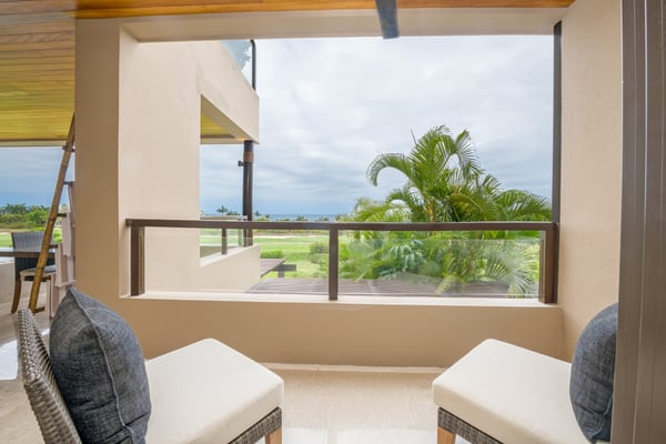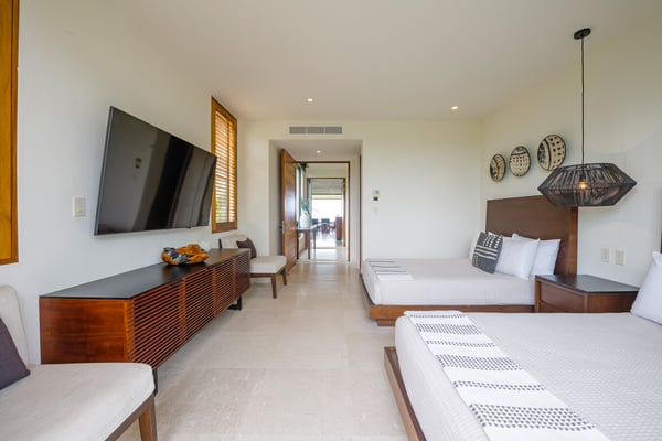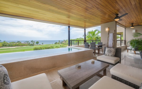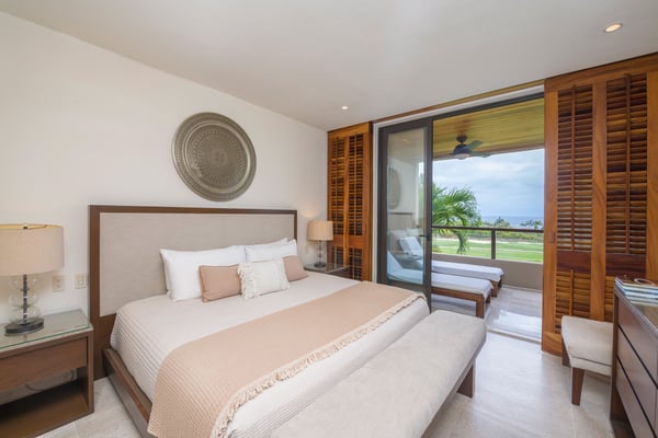 The Premier Golf Membership grants access to Pacifico Golf Course ($), Bahia Golf Course ($), the Tennis Centre ($), the Fitness Center ($), El Surf Club based on min. consumption fee ($), St.Regis Beach Club based on availability and min. consumption fee ($), Pacifico Beach Club, Sufí Ocean Club and Kupuri Beach Club ($). Contact one of our Villa Specialists for more information. Condo Aries is situated alongside the 18th hole of the Jack Nicklaus Signature Bahía Golf Course within the prestigious gates of Punta Mita, home to the world-renowned Four Seasons Resort and exceptional dining options. Condo Aries offers a truly unique lifestyle with breathtaking ocean views from two primary bedrooms, each featuring en-suite bathrooms. The residence combines sophisticated, contemporary design with luxurious comfort, offering an expansive private terrace, plunge pool, and separate living and dining areas.