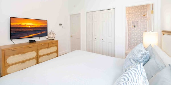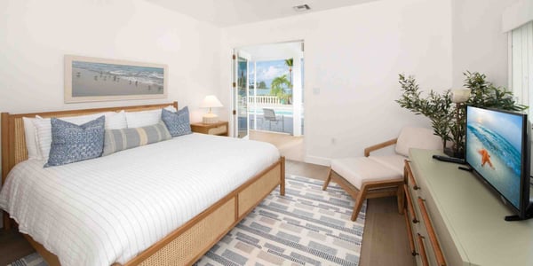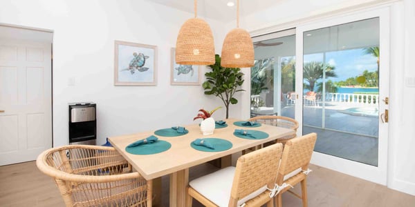 Welcome to Kailypso, a 3-bedroom beachfront villa in Cayman Kai located on Bio Bay. Measuring over 2,800 square feet with spectacular outdoor spaces, cozy interiors, and a secluded beach, this popular villa is the perfect destination for family vacations and group getaways. Nestled among tall palm trees and lush tropical plants, Kailypso’s waterfront pool and patio create a tropical oasis. Plenty of loungers dot the pool deck for sunbathers to kick back and work on their tans. After hours under the sun, cool off with a refreshing dip in the pool or seek shade on the screened-in porch. A concrete pathway leads you down from the pool deck onto a soft sandy beach with a private boat dock. Beach lovers will love this slice of paradise. Two single kayaks are provided during your stay. During the day, launch from the dock and explore the calm surrounding waters of Cayman Kai. Then, on moonless nights, take the kayaks out and watch the water glow with light as you paddle. Bio Bay is one of the few bioluminescent bays in the world making it an unforgettable experience. Kailypso’s three bedrooms include a primary suite with an ensuite bathroom and two additional bedrooms with a shared bathroom between them. Beach Notes The entire island is only 22 miles wide from west to east, so you are never too far from anywhere on Grand Cayman. The cove-front homes in Cayman Kai offer calm serene water for docking a rental boat, private charter pick-up if the villa has a dock or just safe shallow water along the edge swimming for little children. Adults won’t swim in the cove—Rum Point is too nice by comparison—the water is shallow and has a softer bottom and there is no reef here for fish life...but we do see the occasional turtle, eagle ray, or tarpon swim by in the shallows! Another benefit is that we rarely get any seaweed in the cove, so the beaches stay cleaner than the oceanfront beaches. The beaches are flat white barefoot sand. The big draw to this area is the proximity to the Rum Point Club, a public beach club within a short walk that offers a fantastic barefoot beach, many water sports, a restaurant and bar, gift shop and pick-up beach volleyball games. Also, nearby is the Kaibo, a beachfront restaurant, bar, and marina. Lastly, about 20 minutes east there are two large resorts--Morritt's and The Reef--that offer manicured beaches, plus restaurants, a grocery store, liquor store, gift shops, a Subway sandwich shop, the Italian Kitchen Restaurant. These two resorts also offer scuba, snorkel trips, jet ski rentals, windsurfing, kiteboarding, oceanfront pools, and bar service. General Grand Cayman Beach Notes All beaches in Grand Cayman are technically “public” since the Queen owns up to the high watermark and the shoreline quality behind your property may vary seasonally. Be advised that the beach or water entry behind your property may vary slightly from the images on our website because of the weather. The next-door beach is also always available for your use. Ocean Debris and Sargassum Seaweed Beaches in Grand Cayman may also experience floating ocean debris and sargassum weed seasonally. This location is VERY rarely affected. We try our best to work around mother nature.