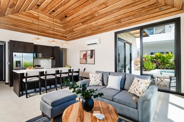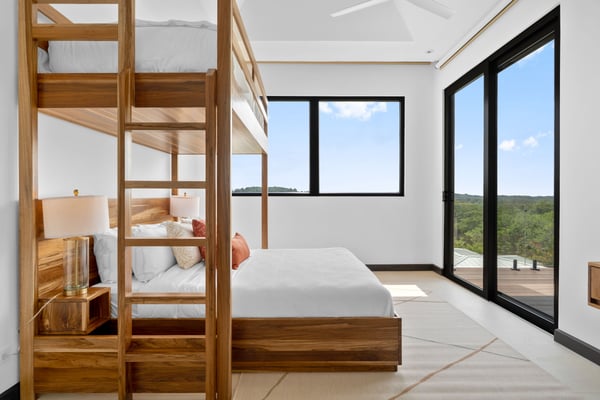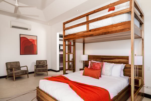 Nearby construction may result in noise disturbances. For further details on how this might affect your stay, please reach out to a villa specialist. Welcome to Casa Laurel. With 4,966 sq. ft. of space, this mansion is designed for large groups. The first level features two suites and a jacuzzi. On the second level, you’ll find other suites, the main terrace, and a private pool. The third level is made for kids, with multiple queen bunk beds and plenty of room to hang out. You’ll enjoy partial ocean views from select areas of the home, and you’re just a 10-minute walk from Tamarindo Beach.