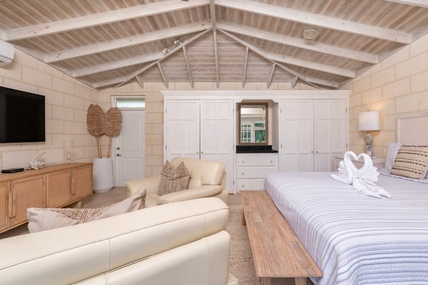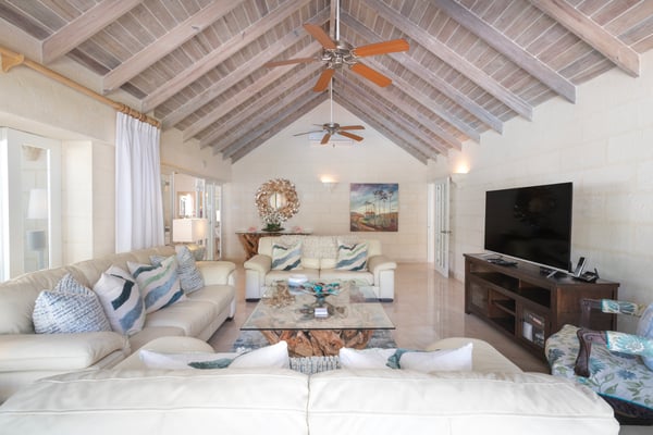 Welcome to Queen’s Fort Pavilion, a magnificent 5-bedroom, 5.5-bathroom luxury villa within the exclusive Queens Fort community, just moments from the shimmering Caribbean Sea. Set along Barbados’ famed West Coast, this exceptional home blends timeless heritage with modern refinement to create a truly unique island sanctuary. The villa’s grand entrance sets the tone, with a sweeping bridge driveway lined by Royal Palms, which was once the route taken by troops entering the historic Old Queens Fort in the 17th and 18th centuries. This sense of history, combined with elegant updates and meticulous maintenance, gives the property its enduring charm. Inside, Queen’s Fort Pavilion features spacious living and entertainment areas, including the inviting master suite, a comfortable air-conditioned media room, and an elegant reception and dining space that flows effortlessly to the outdoors. Guests can enjoy both covered alfresco dining and open terrace lounging, perfect for relaxed island living. The main house hosts four beautifully appointed en suite bedrooms along the western wing, each offering privacy and style. The villa’s expansive pool deck and sparkling private pool are framed by swaying palm trees, offering a serene space for sunbathing or social gatherings. The grounds are fully enclosed with solid walls and secure gates, ensuring complete privacy and peace of mind. A short stroll along the scenic beach path leads to two private access points to the beaches of Queens Fort and Old Queens Fort. These locations offer calm, protected stretches of sand ideal for swimming and sunset walks. The recently enhanced coastline offers the perfect setting to unwind and take in the beauty of Barbados.