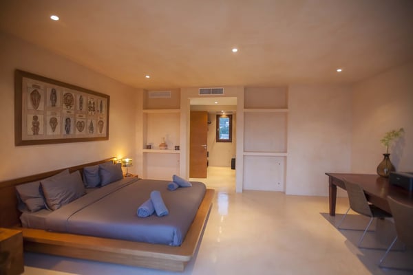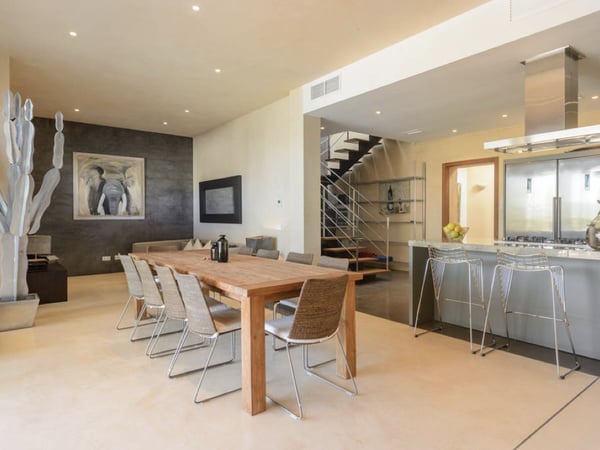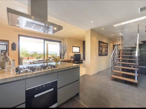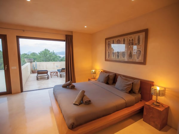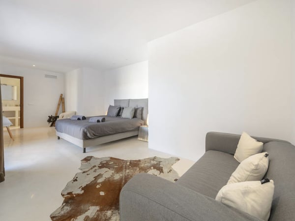 This spacious modern villa is situated near San Agustin, perfectly positioned between San Jose and San Antonio, close to amenities, and just 10 minutes away from the astonishing sunsets at Cala Comte, Cala Tarida, and Cala Bassa. Set on an amazing, private, fully fenced plot of 20,000m2, the gardens offer an abundance of fruit trees and mature Mediterranean gardens, which receive endless sunshine and offer great spaces to take in the stunning countryside views. Inside, offers 450m2 of living space, very tastefully decorated with first class pieces of furniture, as well as air conditioning throughout and fibre optic internet. Villa Izarra is ideally equipped for outdoor entertaining with a BBQ area, and shaded dining space with multiple chill-out seating areas. There is also an activity area that could be used for yoga classes, which perfectly complements the villa's tranquil and natural ambiance. The swimming pool area offers a large sun-covered terrace, luxury sun loungers, an outdoor shower, and a four-poster pagoda assuring guests the ultimate relaxation. Villa Izarra's extensive grounds are secured by an electric gate with a perimeter fence and an extensive tree line to offer guests an excellent level of security and privacy with plenty of space for parking.