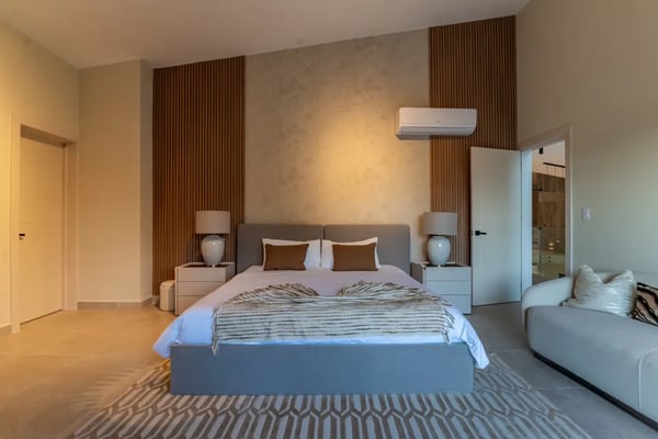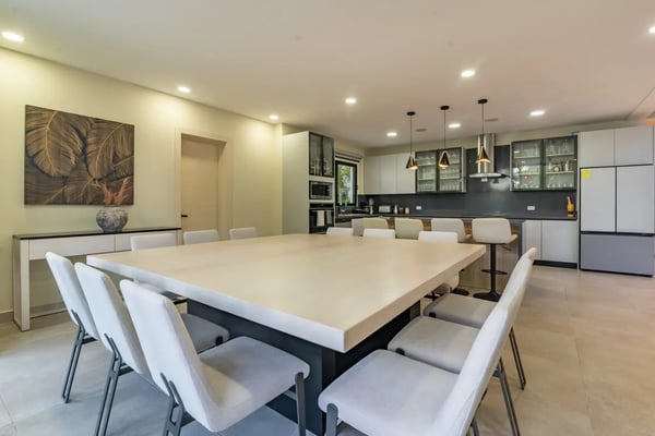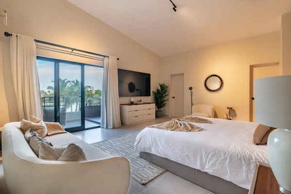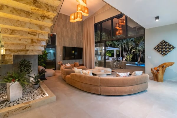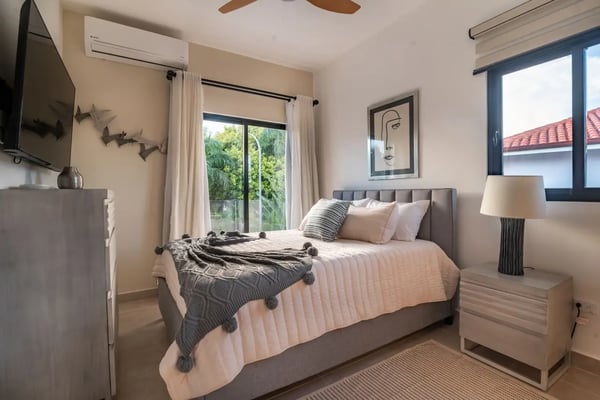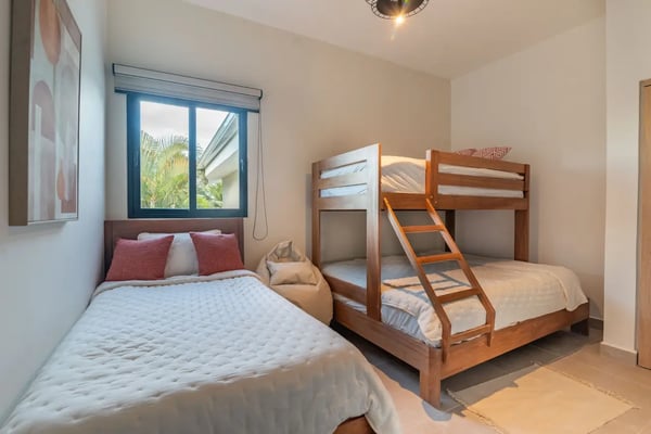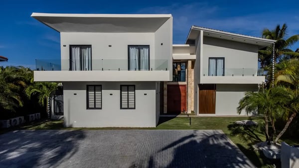 In the heart of Bavaro is Cocotal Golf & Country Club, Punta Cana's premier gated community. Guests staying within Cocotal have access to all Club facilities including the swimming pools, restaurants ($) and bars ($). Club facilities may be closed on certain days for private events. Villa Cherry is a newly built (from 2025) 7-bedroom villa, 2-story villa with private pool, Jacuzzi, outdoor palapa with BBQ area, movie theater, and fitness room! Step through grand, open-air living areas with high ceilings and seamless indoor outdoor flow. Floor to ceiling glass, lush landscaping, and gentle breezes blur the lines between inside and out. In the evening, ambient lighting transforms the terraces, pool deck, and garden into a private haven. Each bedroom is a private retreat, with luxurious bedding, ensuite bathrooms, and quiet views of tropical gardens or the sparkling pool. You’ll find multiple living lounges, a fully equipped kitchen, and al fresco dining spaces for intimate dinners under the stars. Outside, the private pool is surrounded by generous lounge areas and shaded nooks — ideal for reading, poolside naps, or slow conversations. Tropical foliage ensures that every vantage feels secluded, yet open to gentle breezes. At Villa Cherry, the experience goes beyond the expected. Unwind in your own dedicated movie/media room, complete with plush seating and a state-of-the-art sound system. Whether it's family movie night or a quiet evening screening your favorites, it’s the perfect space to relax after a sun-filled day. Stay active in the villa’s well-equipped gym, featuring a treadmill, dumbbells, and an inclined bench press - ideal for maintaining your wellness routine while traveling. Villa Cherry offers more than a luxury stay — This is your an invitation to live in the moment, rest deeply, and return home renewed.